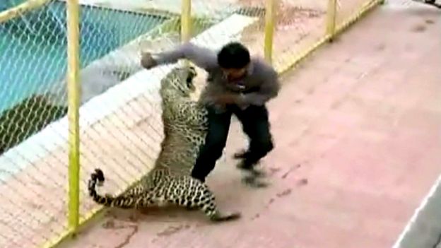 Kanda ya video iliyonaswa na kamera za usalama kwenye shule hiyo zilimuonyesha chui huyo akimshambulia mwanamume karibu na kidimbwi cha kuogelea.